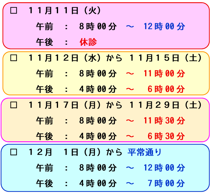 お知らせ当院は、令和7年11月12日(水)電子カルテ移行のため